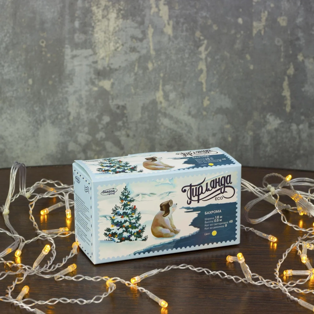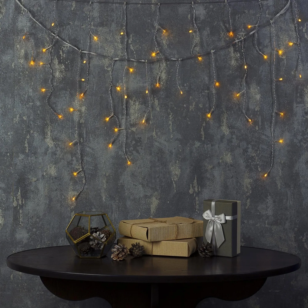 Гирлянда светодиодная Бахрома 1.8 х 0.5 м , IP20, 48 LED,желт,8реж, 3556833