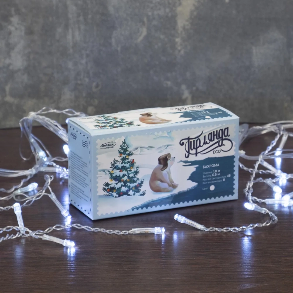 Гирлянда светодиодная Бахрома 1.8х0.5 м, IP20, 48 LED, бел, 8 реж 3556829