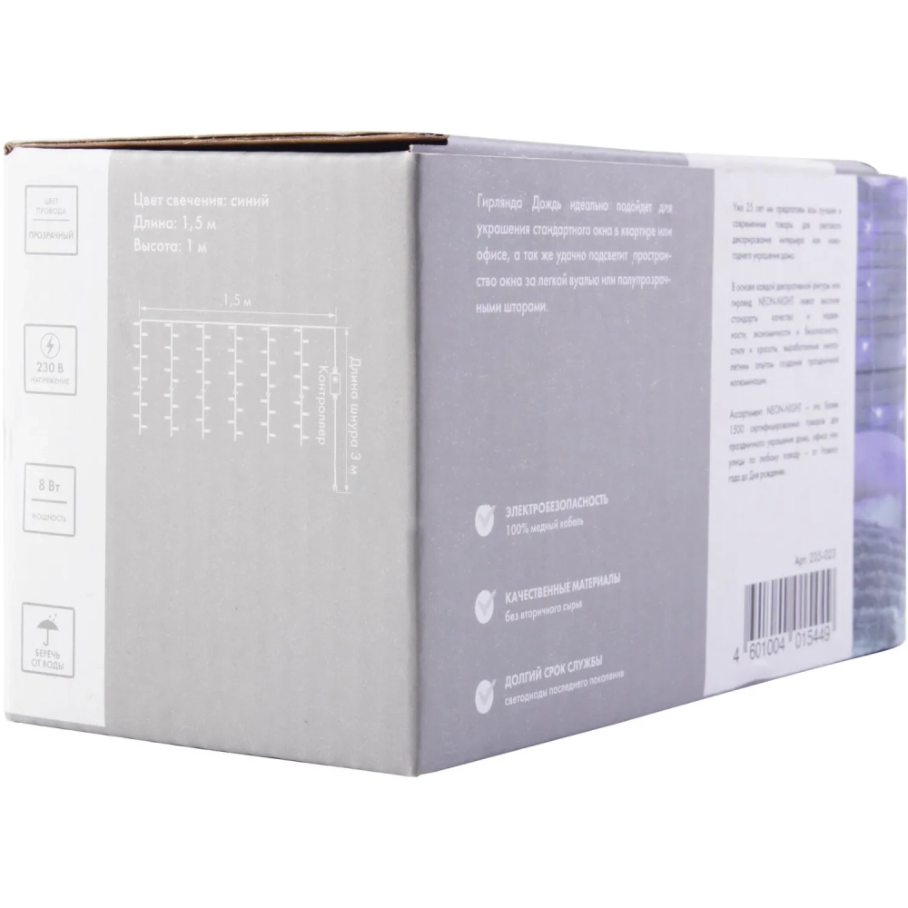 Гирлянда светодиодная Занавес 1,5x1 м, 96 LED, мерцание, Синий, 235-023