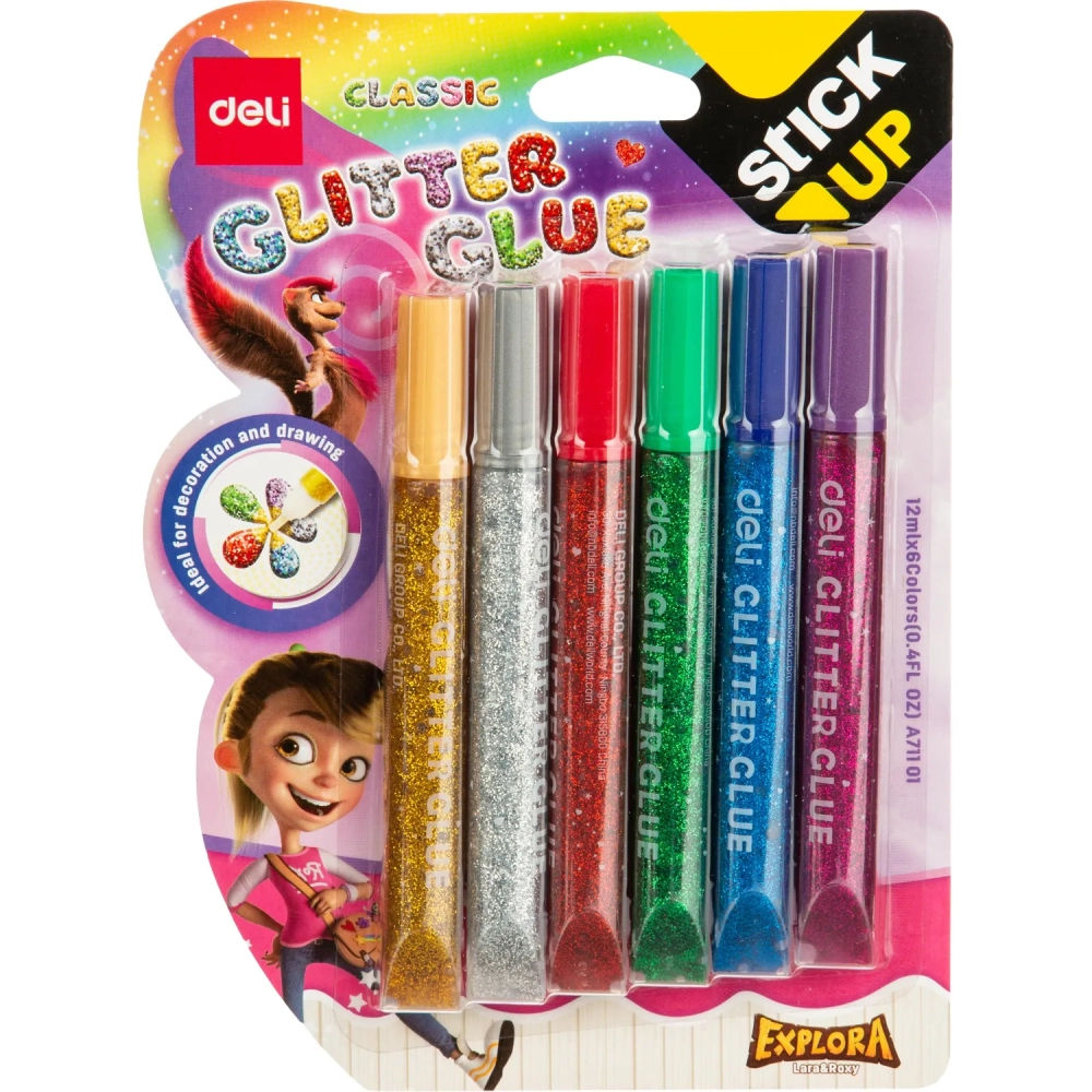 Глиттер гель Deli EA71101 12мл блистер с блестками 6цв/наб Explora