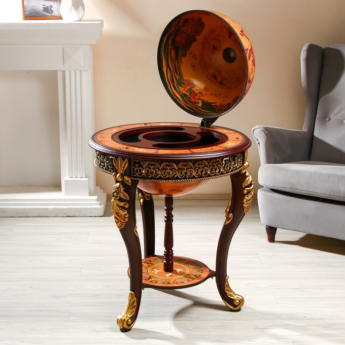 Глобус бар декоративный "Винтажная карта" узорные ножки 60,4х60,4х104 см