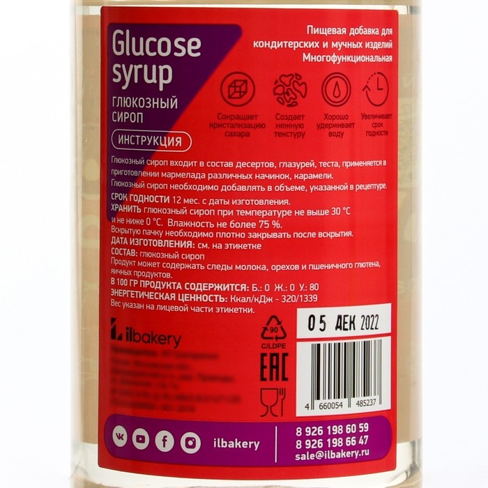 Глюкозный сироп необходимо добавлять в объеме, указанной в рецептуре.