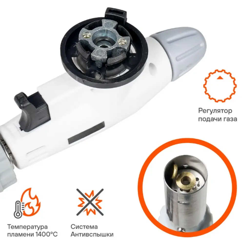 Горелка газовая на цанговый баллон, пьезоподжиг, анти-вспышка,