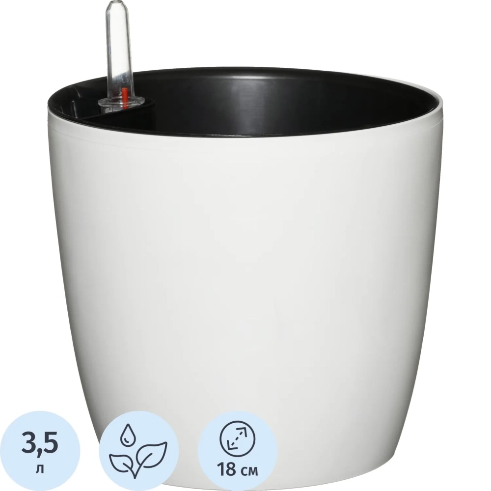 Горшок цветочный с автополивом КОМФОРТ 3,5л белый ПИ-25-9ТХ