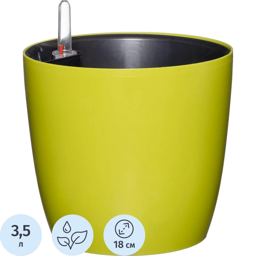 Горшок цветочный с автополивом КОМФОРТ 3,5л оливковый ПИ-25-6ТХ