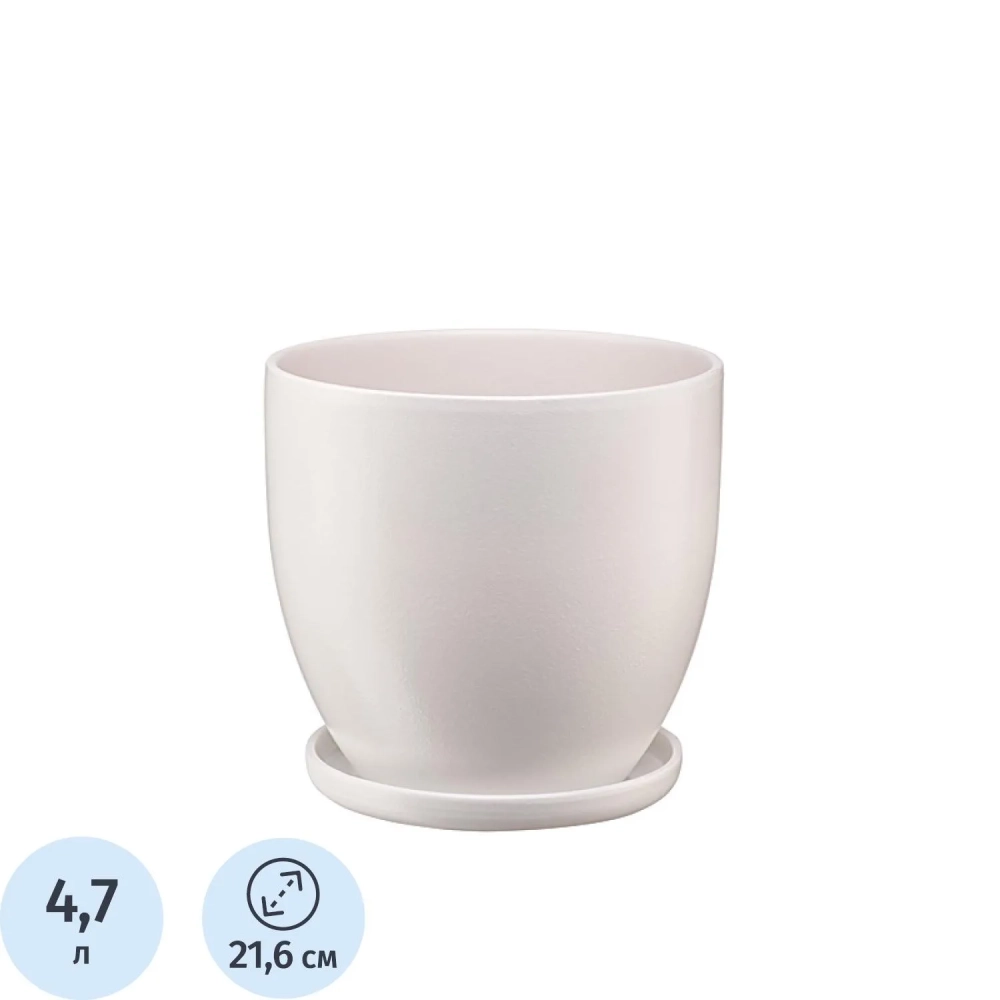 Горшок Керамический Бутон с подставкой, 4,7л, молочно-белый ВН-35-3