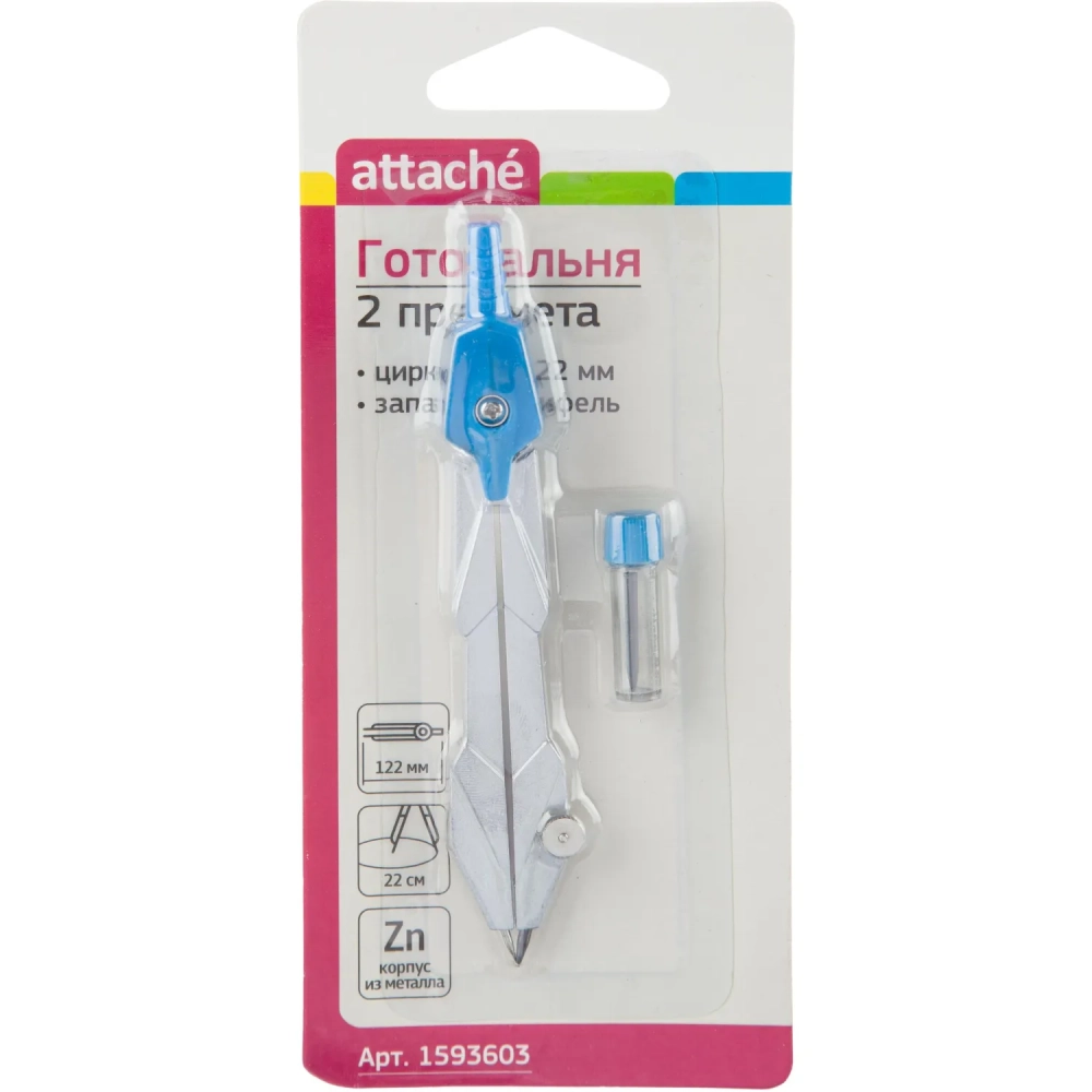 Готовальня Attache 2пр/наб,циркуль 122мм,синий,блистер,европодв