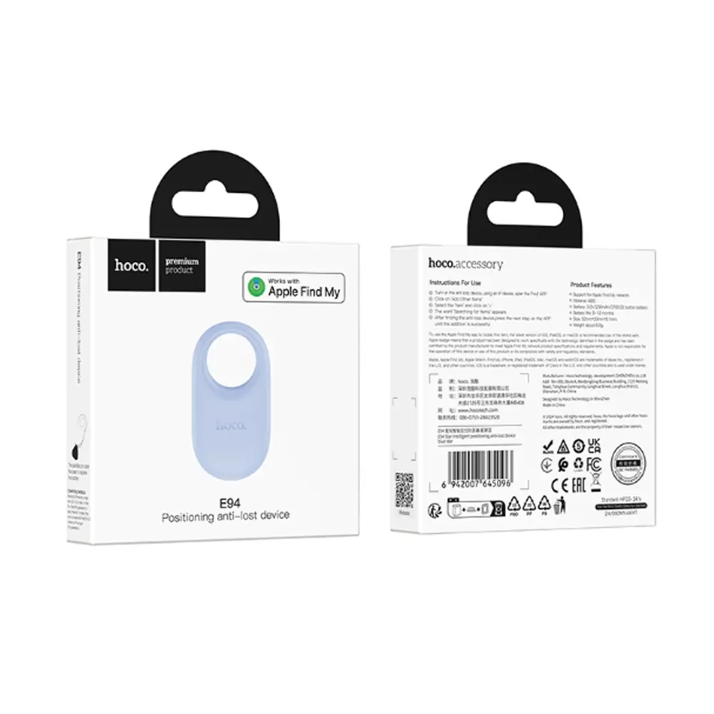 GPS трекер Hoco E94 Star разработан для удобного и эффективного отслеживания ваших личных вещей. Он поддерживает интеграцию с популярной функцией Apple Find, что позволяет быстро находить забытые или потерянные предметы, используя экосистему устройств от Apple.