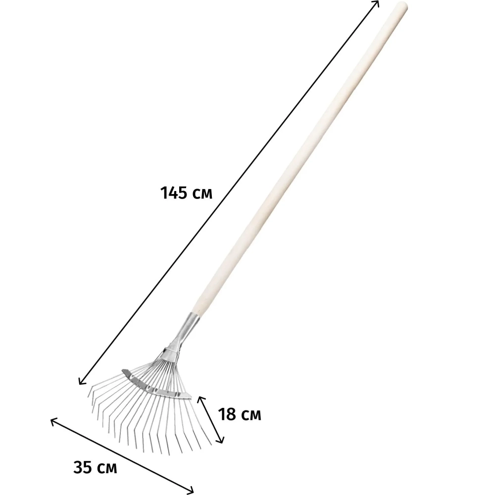 Грабли веерные стальные 18 круглых зубьев деревянный черенок 350х1450мм