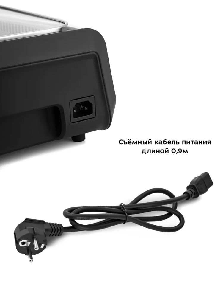 Электрогриль оснащен термостатом для поддержания постоянной температуры панели, а также панелью управления с дисплеем.