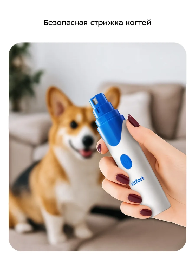 Гриндер для когтей Kitfort КТ-9821 поможет быстро и безопасно сточить когти вашего домашнего любимца без посторонней помощи.