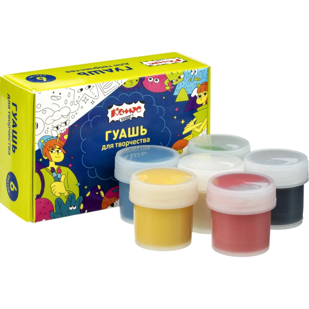Гуашь Комус Класс Максики 6 цв/наб по 10 мл, картонная коробка