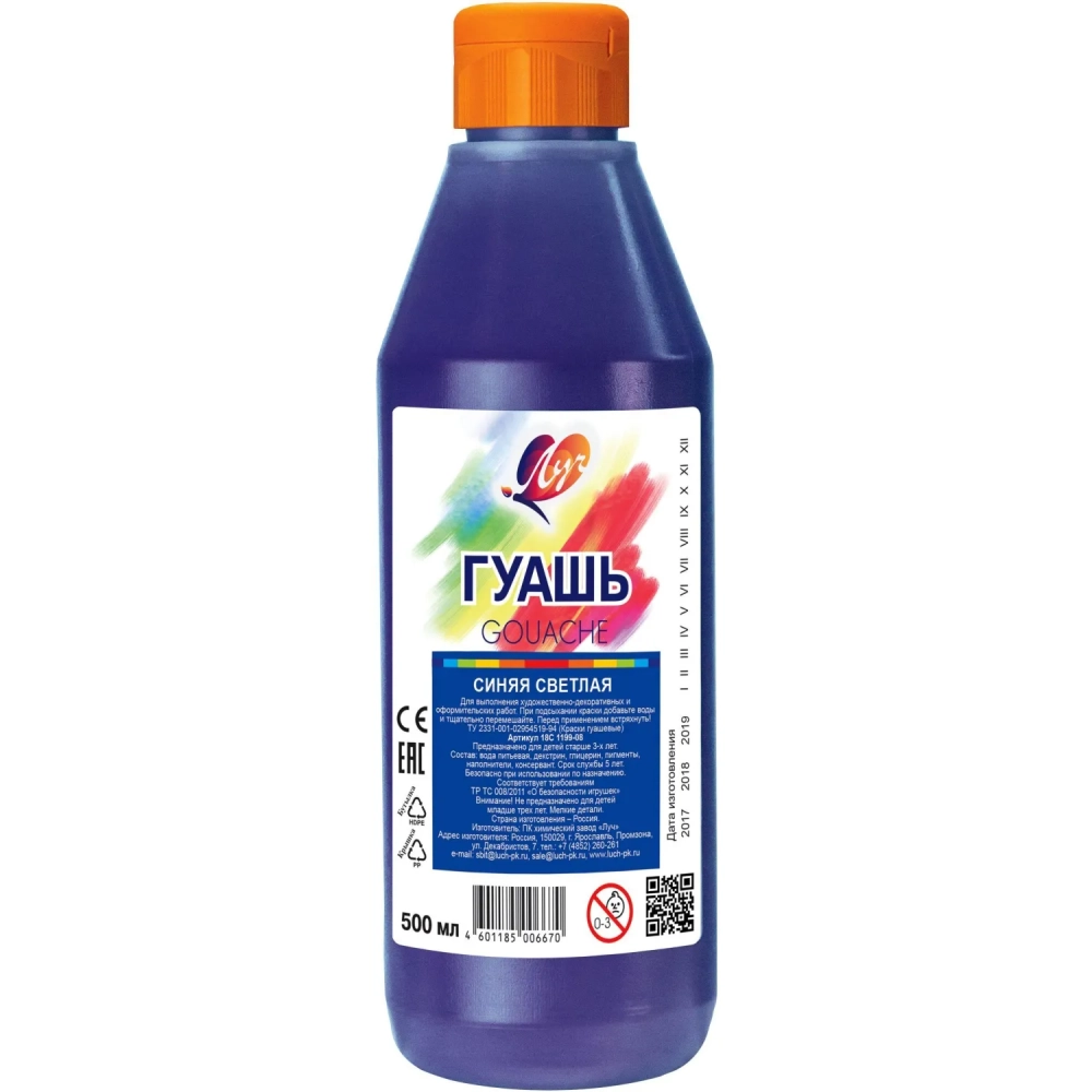 Гуашь Луч синяя светлая 500мл 18С 1199-08