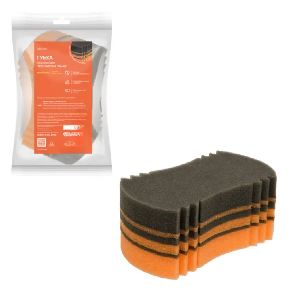 Губка поролоновая "Восьмерка гранд" , изготовленная из ВЫСОКОПРОЧНОГО мелкопористого поролона, поможет очистить фары, стекла и кузов машины от разводов, грязи и пыли. Увеличенный размер губки позволяет впитывать большее количество жидкости или моющего средства, что дает возможность еще тщательнее очищать загрязненную поверхность. Пористое строение губки не дает собраться мелкому мусору, поэтому моющий слой изделия всегда остается гладким и не царапает поверхность.