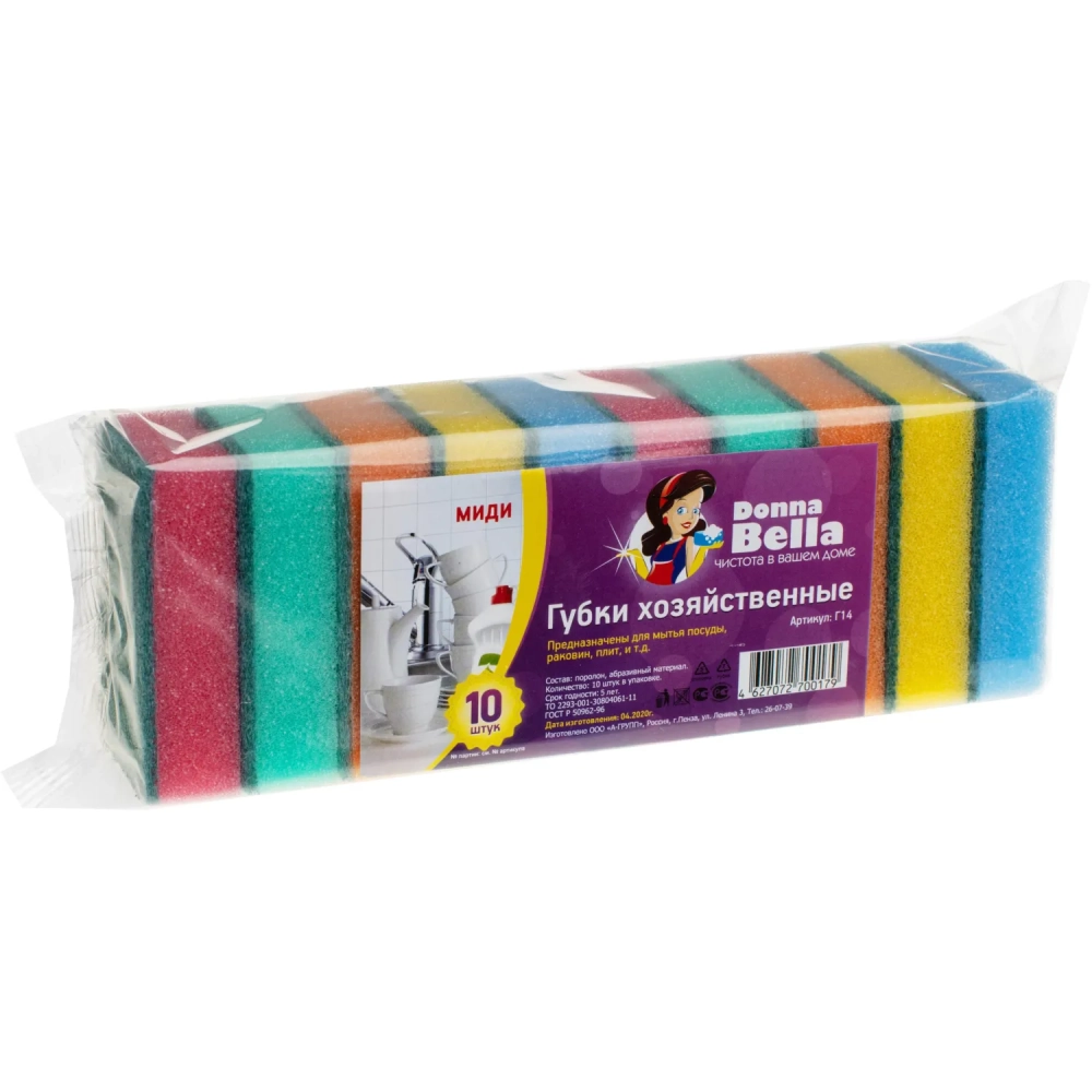 Губки для мытья посуды Миди (10 шт/уп) 80x50x25мм