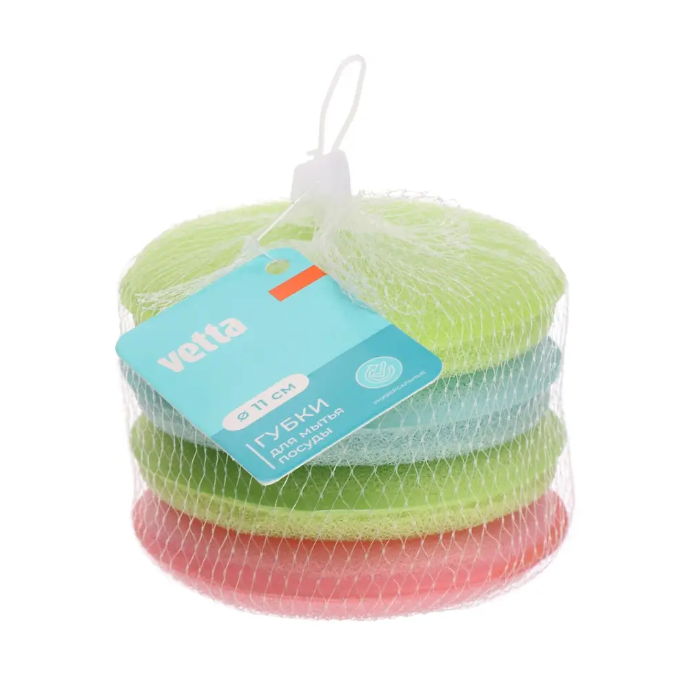 Губки для мытья посуды тм VETTA, 4 шт, d11см, поролон