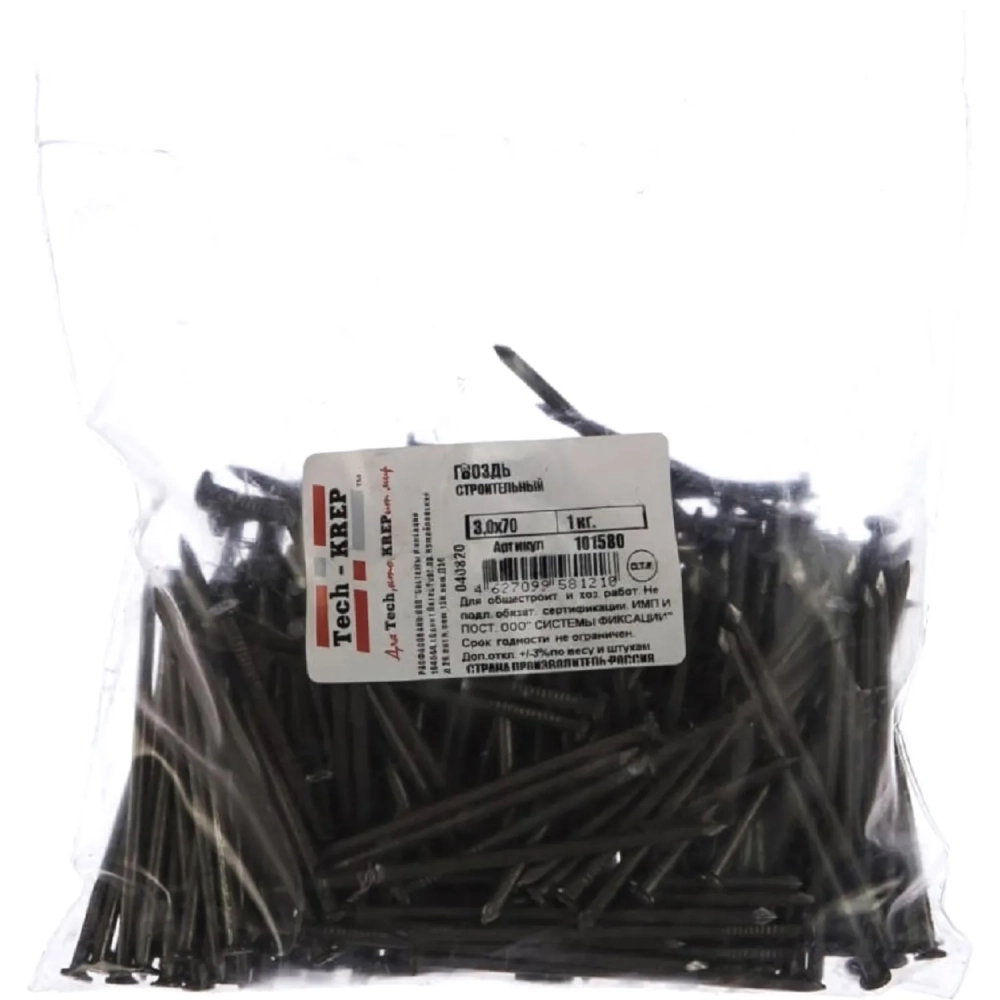 Гвозди строительные 3,0х70, 1 кг пакет Tech-Krep/Zitar 101580