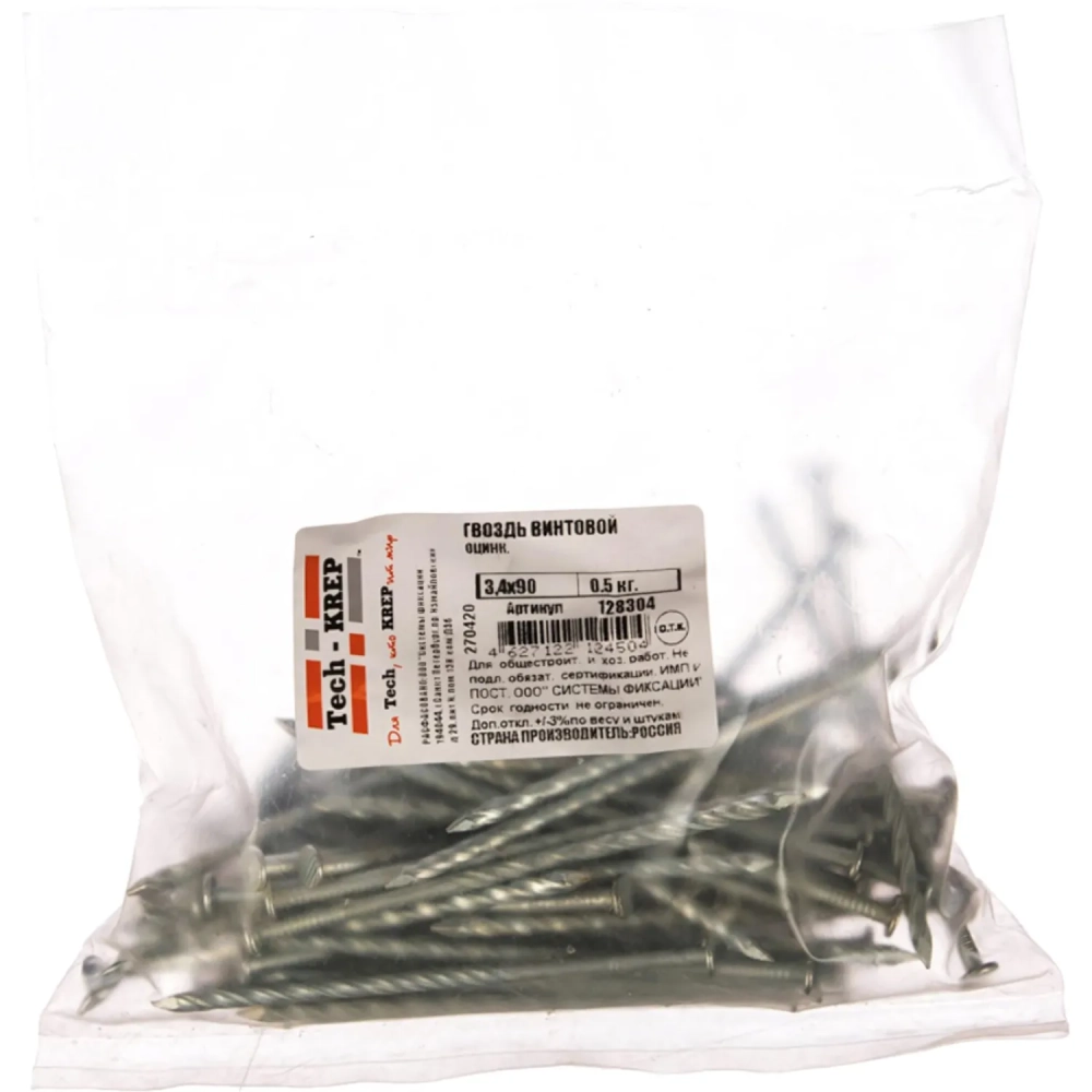 Гвозди винтовой оцинк. 3,4х90 (0,5 кг) - пакет Tech-Krep/Zitar 128304