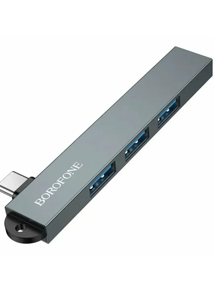 Borofone FH1A выполнен в элегантном сером цвете, что позволяет ему гармонично вписаться в любой интерьер. Благодаря своему компактному размеру и легкому весу, этот USB HUB легко брать с собой в поездки, что делает его отличным выбором для активных пользователей и профессионалов, работающих на ходу.