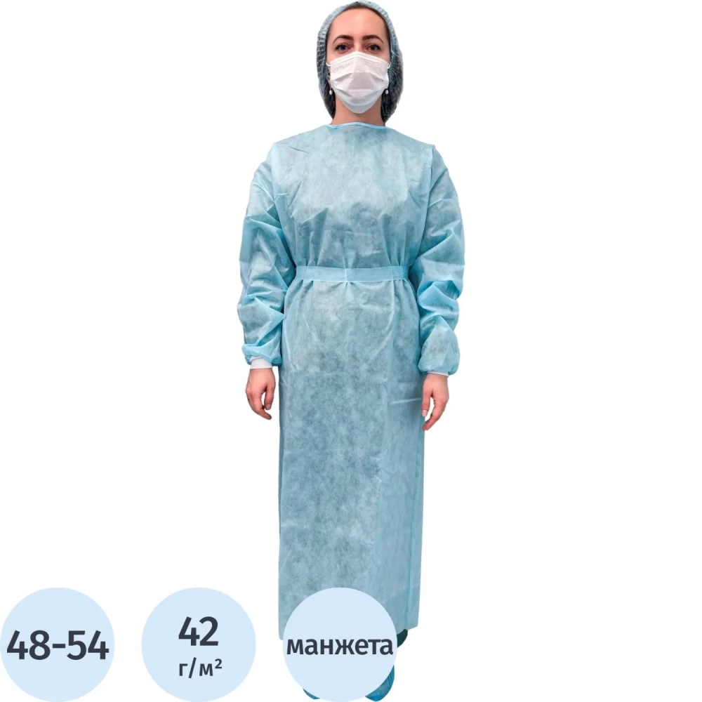 Халат хирург. н/с,рук.манжет, дл.140 см,пл.42,р.48-54,голуб, 2шт./уп,5053/2
