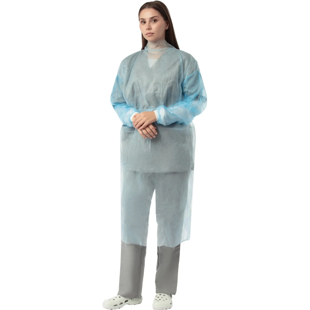 Халат н/с , на завязк, рук.манж, дл.110см, XL, пл 20, голуб, 10 шт/уп