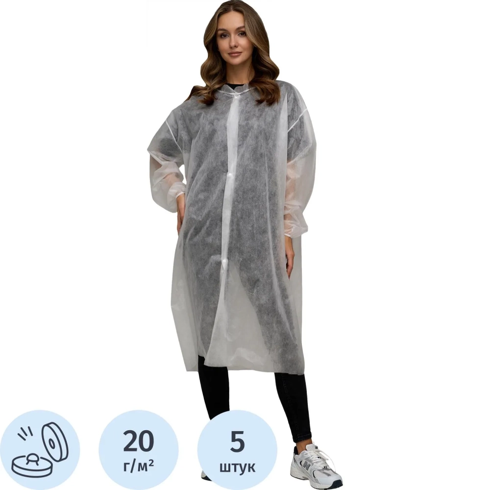 Халат на кнопках, (20 гр), р.XL ,белый, (5 шт/упак)