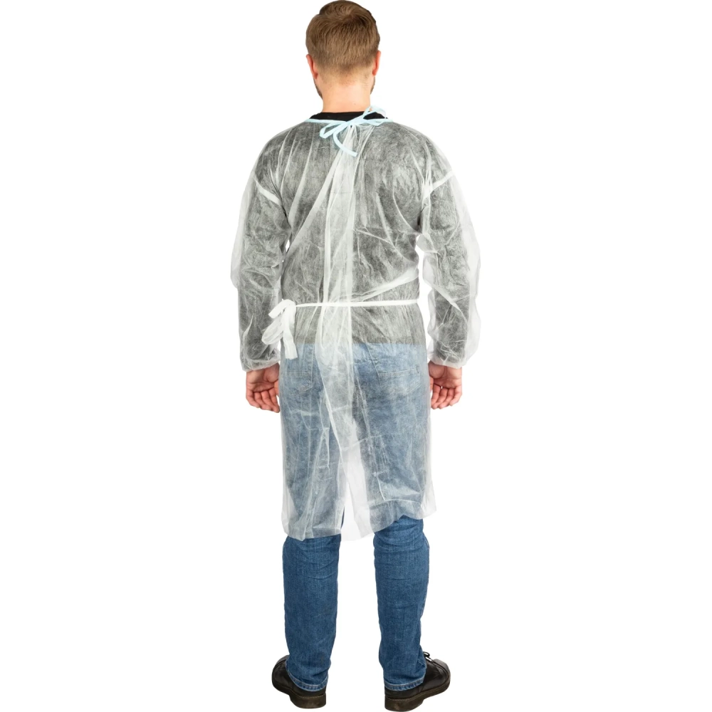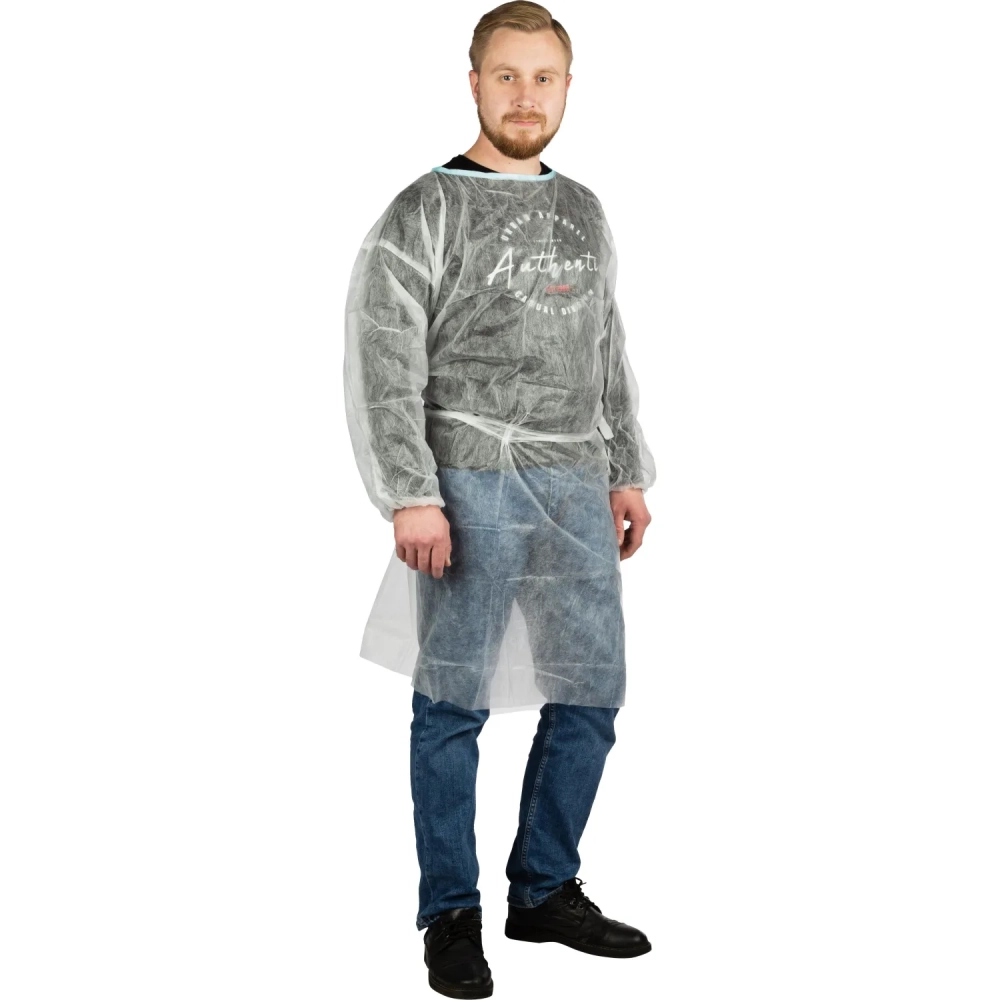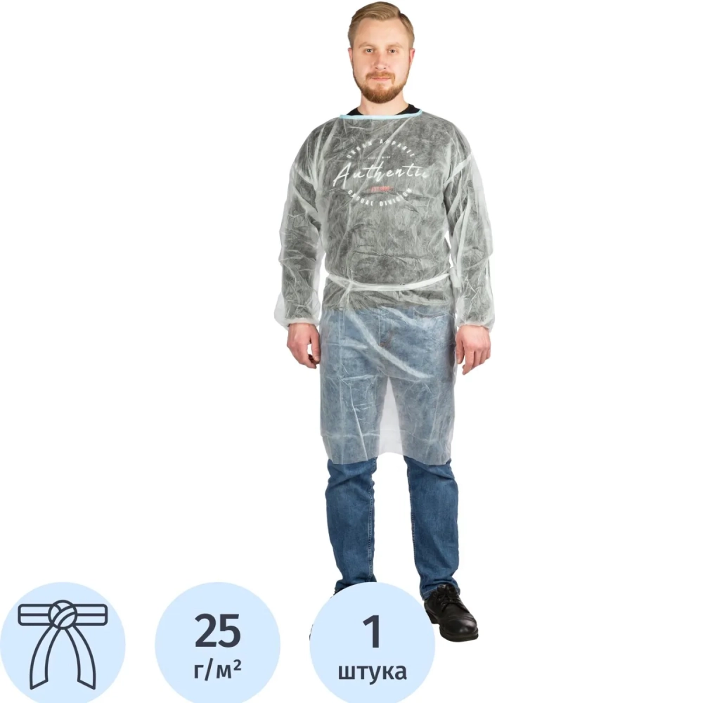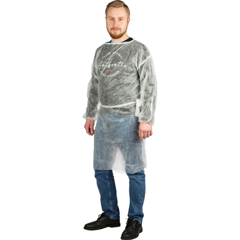 Халат одноразовый (накидка) на завязках белый 110 см рукав-резинка