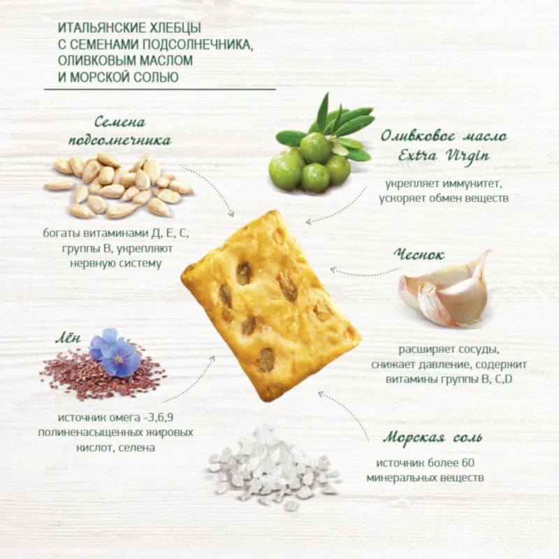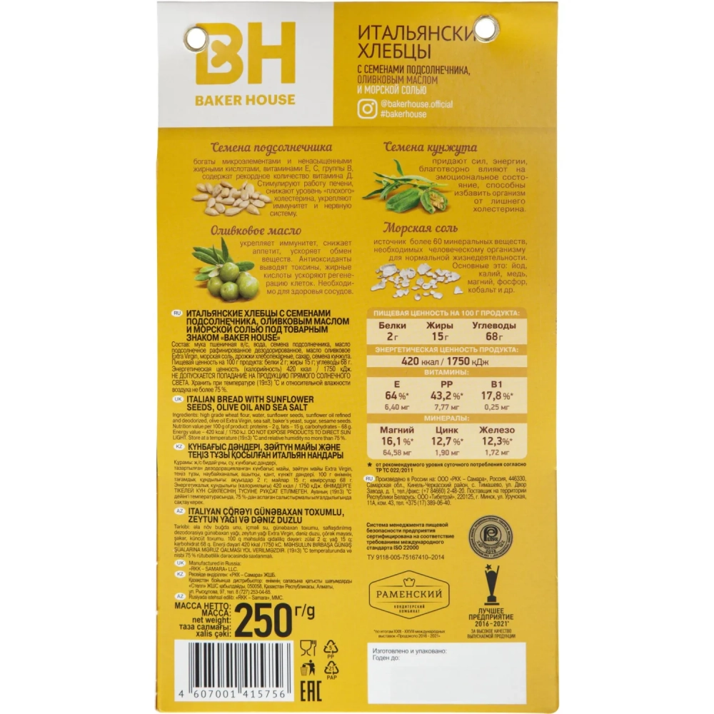 Хлебцы Итальянские BAKER HOUSE сем подсолн олив масл соль 1/250 Раменс 1,75