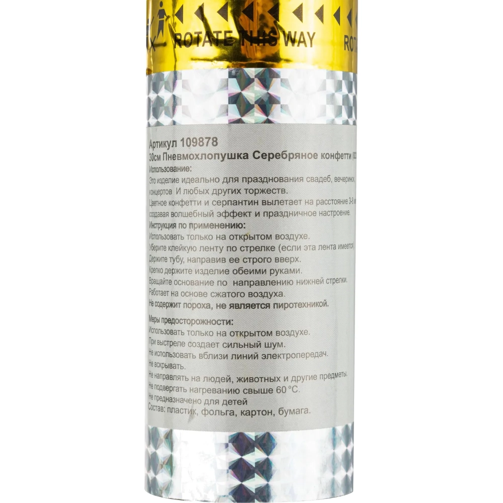 Хлопушка пневм. в пластиковой 30см тубе Серебряное конфетти 109878