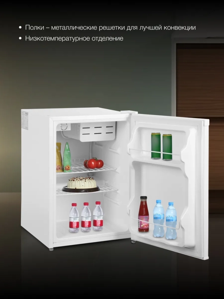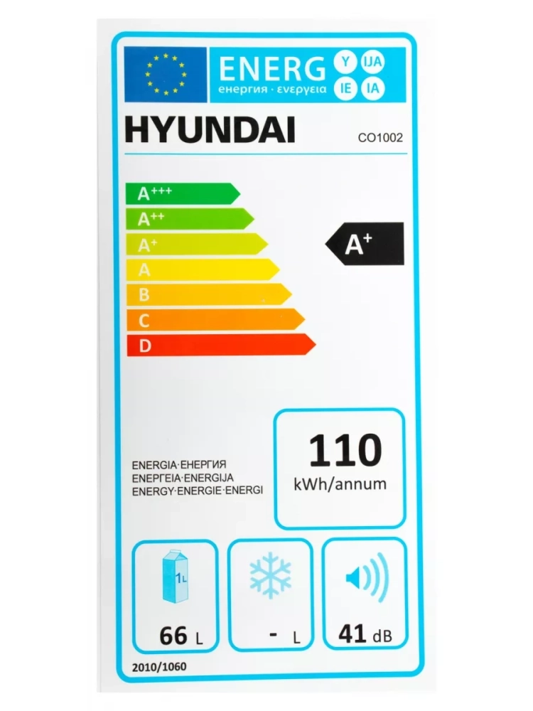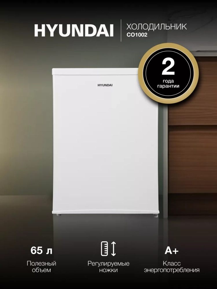 Холодильник Hyundai CO1002 белый, однокамерный, общий объем 67л, с ручной разморозкой холодильной камеры, без морозильной камеры, расположение морозильной камеры: морозильная камера отсутствует