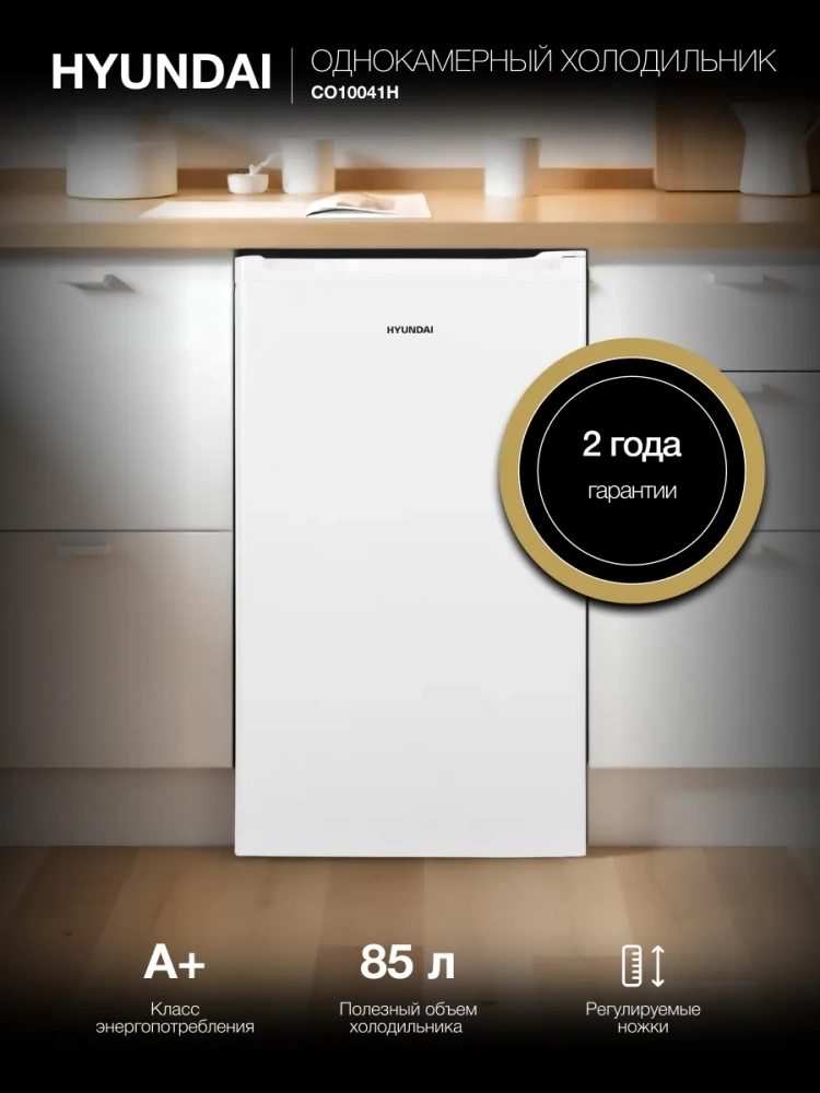Холодильник Hyundai CO10041H белый, однокамерный, с ручной разморозкой холодильной камеры (CO10041H БЕЛЫЙ)