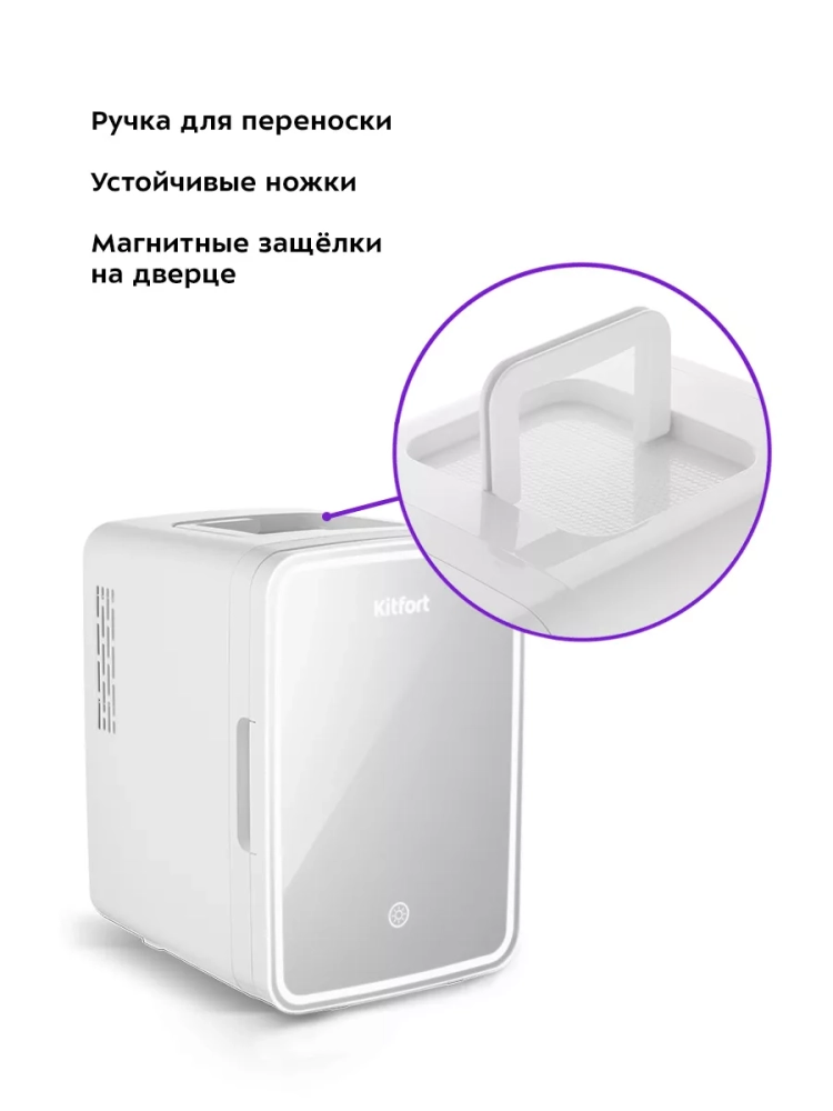 В холодильнике для косметики Kitfort KT-3162 поддерживается оптимальная температура для хранения косметических средств: кремов, сывороток, лосьонов, масок. Косметику необходимо хранить при температуре 5–25 °С, оптимальной считается температура 10–18 °С. Также у устройства есть режим нагрева, который подойдет, например, для разогрева восковых полосок, специальных масел или масок перед их использованием.