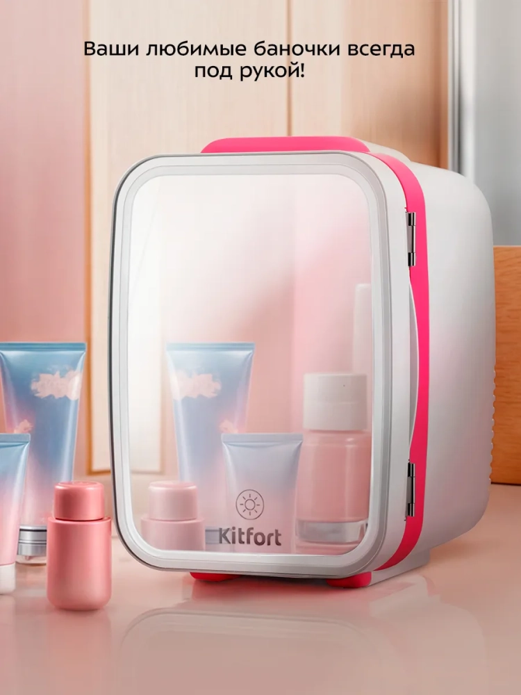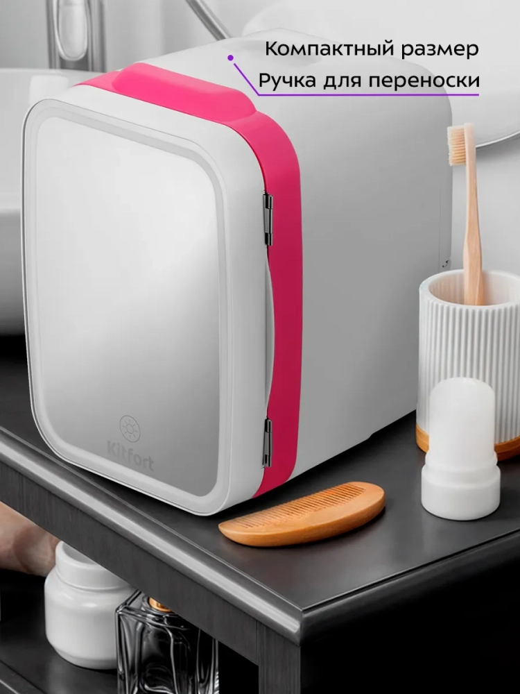 В холодильнике для косметики Kitfort KT-4148 поддерживается оптимальная температура для хранения косметических средств: кремов, сывороток, лосьонов, масок. Также у устройства есть режим нагрева, который подойдет, например, для разогрева восковых полосок, специальных масел или масок перед их использованием.