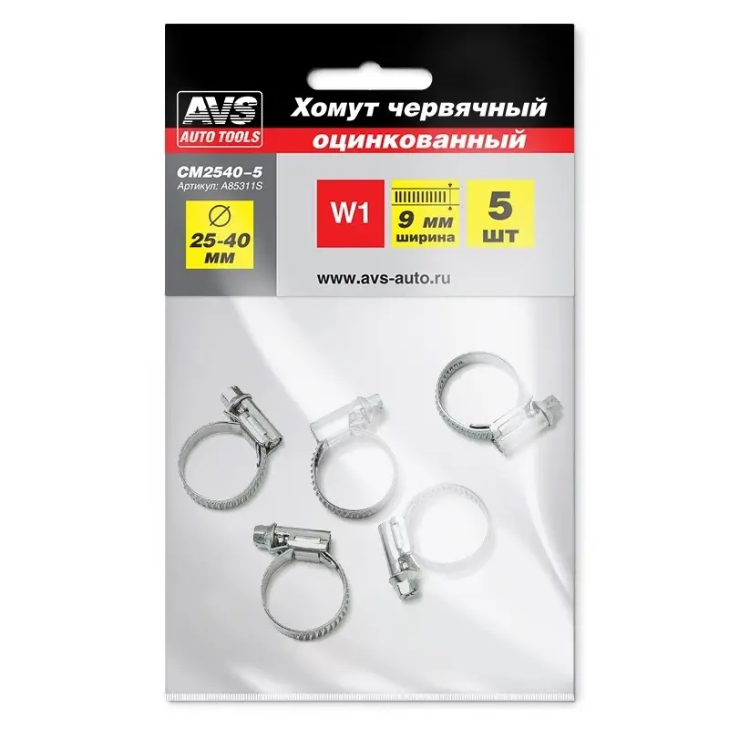Хомут червячный AVS CM 25-40/9 оцинкованный 5шт/уп