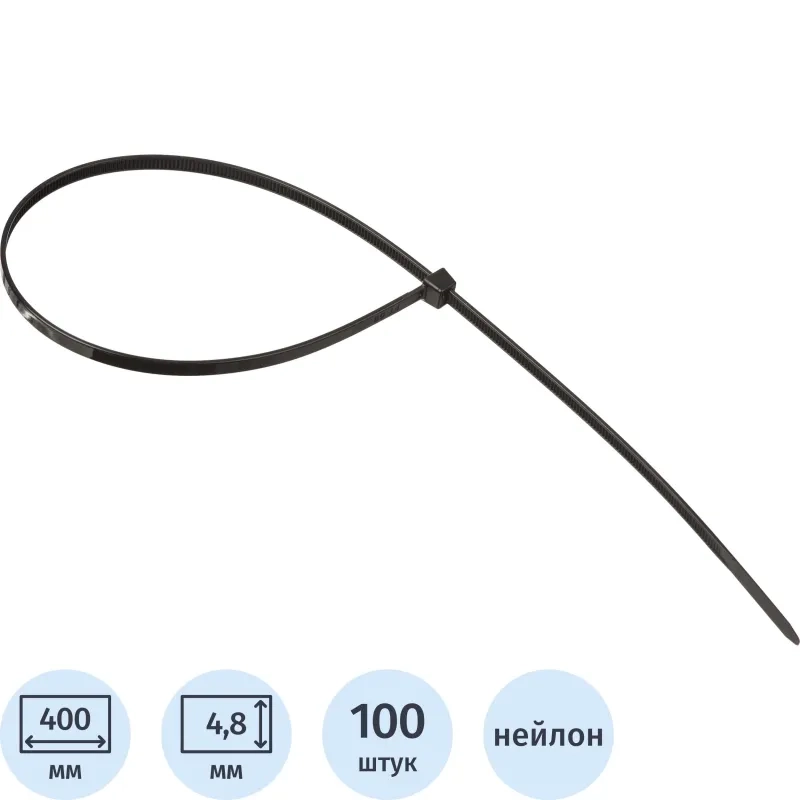 Хомут стяжка нейлоновая Topfort 5х400 (4,8х400 мм) чёрный 100 шт/уп