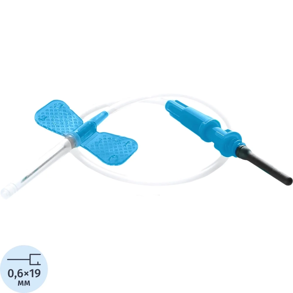 Игла-бабочка 23G (0,6х19мм) 19см голубая, луер-адаптер Lind-Vac 100шт/уп