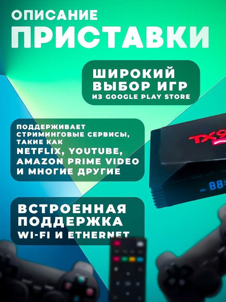 TX9 Pro - это универсальная ТВ-приставка, которая превращает ваш телевизор в современный мультимедийный центр. С мощным процессором и операционной системой Android, она открывает перед вами множество возможностей: от стриминга видео высокого разрешения до игр, просмотра веб-сайтов и многое другое. С поддержкой 4K разрешения, вы насладитесь четким и реалистичным изображением на вашем большом экране. TX9 Pro предлагает доступ к широкому спектру контента и приложений через Google Play Store. Вы сможете скачивать популярные приложения, потоковые сервисы и игры, чтобы настроить свой опыт развлечений по своему вкусу. С возможностью подключения через Wi-Fi или Ethernet, вы можете наслаждаться стабильным интернет-соединением, стримить видео высокого разрешения и общаться в социальных сетях. Различные порты, включая HDMI, USB и SD-карту, обеспечивают удобство подключения внешних устройств и носителей данных. Функция просмотра контента в потоковом режиме позволяет вам стримить видео, фильмы, сериалы и телепередачи с популярных платформ, таких как Netflix, YouTube, Amazon Prime Video и многих других. С поддержкой многоканального звука, вы окунетесь в увлекательный звуковой мир фильмов и игр. Устройство легко в использовании с помощью пульта дистанционного управления, а поддержка различных форматов мультимедиа позволяет наслаждаться видео, музыкой и фотографиями высокого качества на вашем большом экране. TX9 Pro - это мощное и многофункциональное решение, которое превратит ваш телевизор в полноценный мультимедийный центр. Наслаждайтесь разнообразием контента, управляйте устройством легко и создавайте незабываемые моменты развлечений у себя дома.