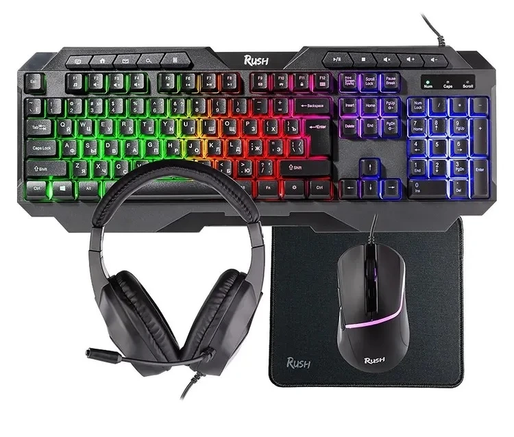 Игровой набор Smartbuy F10 объединил все необходимое для того, чтобы отдаться процессу полностью, не отвлекаясь на подбор чего-то недостающего. Он включает наушники, клавиатуру, мышь и коврик для нее.