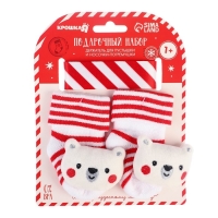 Подарочный набор новогодний: носочки - погремушки на ножки «Мишка», 2 шт., Крошка Я