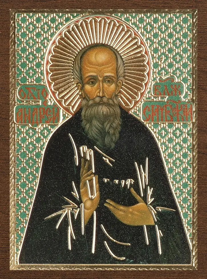 Икона "Андрей Симбирский" 4х6 на МДФ-6