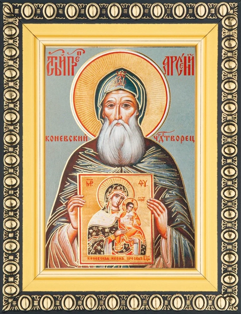 Икона "Арсений Коневский Чудотворец" 6х9 в раме 8х11