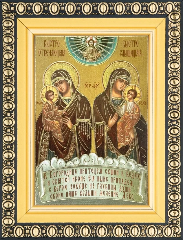 Икона БМ "Быстрослышащая и Быстроотвечающая" 6х9 в раме 8х11