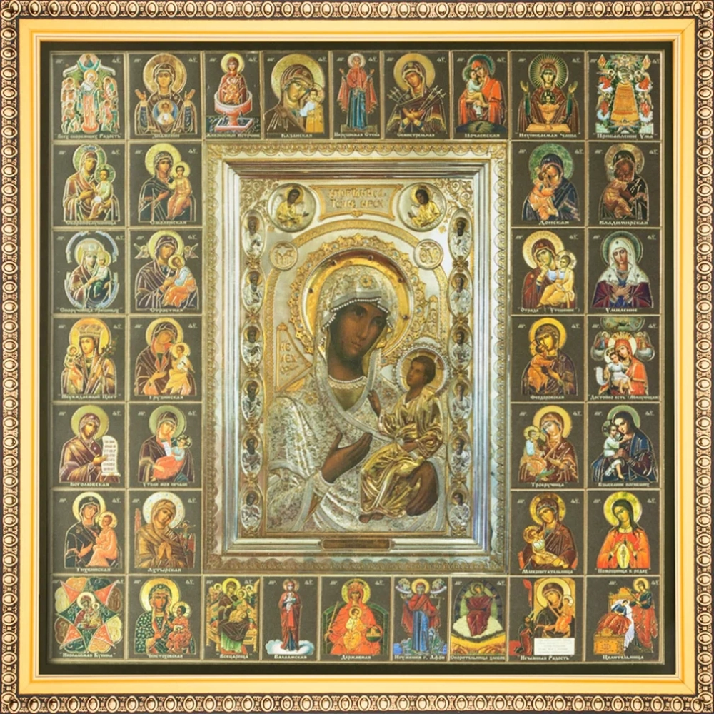 Икона БМ "Иверская" и Собор Богородицы, рама 28х28, в коробке