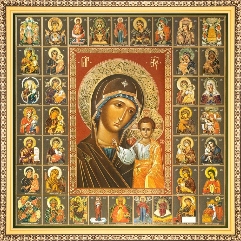 Икона БМ "Казанская" и Собор Богородицы, рама 28х28, в коробке