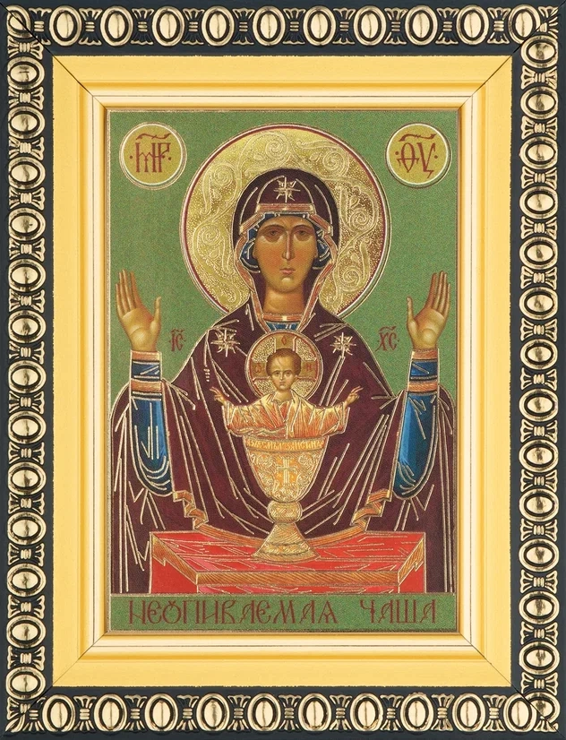 Икона БМ "Неупиваемая Чаша" 6х9 в раме 8х11