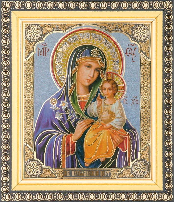 Икона БМ "Неувядаемый цвет" 10х12 в раме 13х15