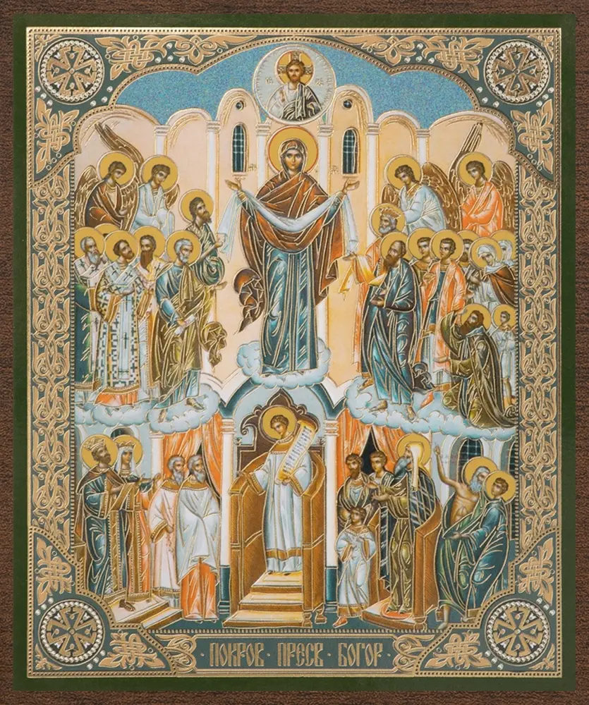 Икона БМ "Покров Пресвятой Богородицы", вид 2, 10х12 на МДФ-6