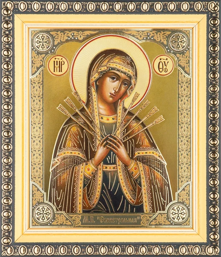 Икона БМ "Семистрельная" 10х12 в раме 13х15