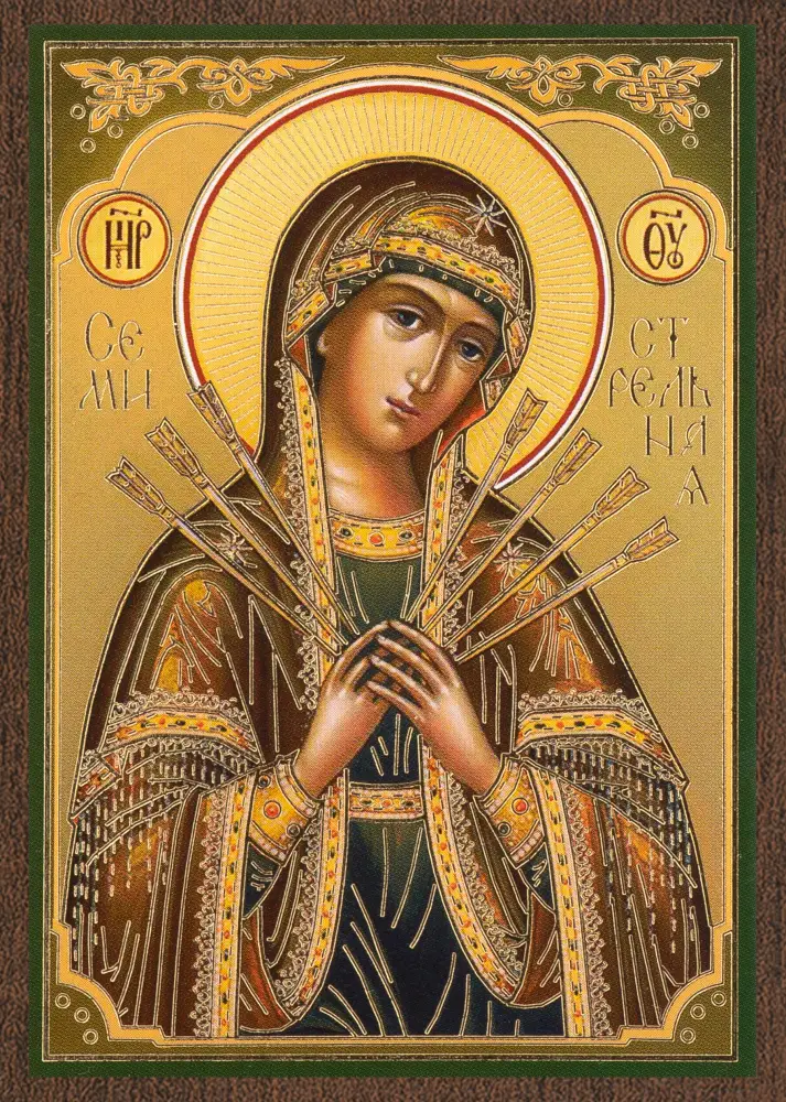 Икона БМ "Семистрельная" 6х9 на МДФ-6