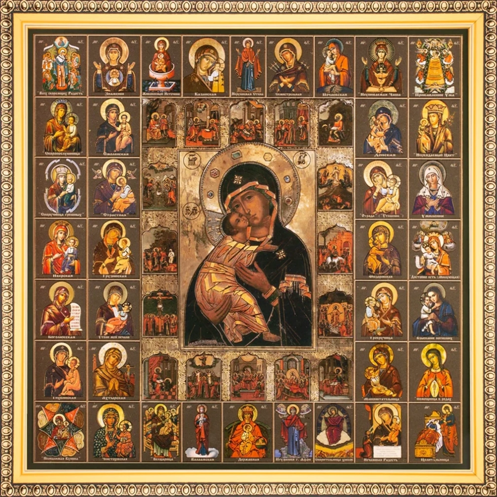 Икона БМ "Владимирская" и Собор Богородицы, рама 28х28, в коробке